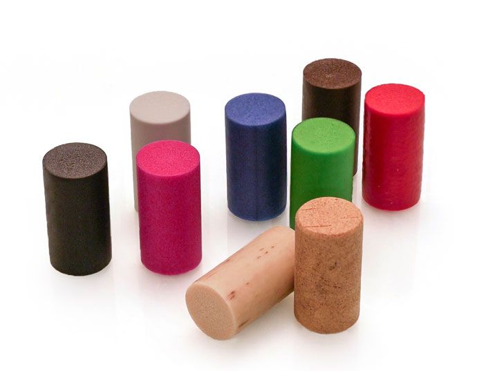 Πώματα φτιαγμένα από συνθετικό φελλό, ιδανικά για τον εμπωματισμό φιαλών κρασιού.